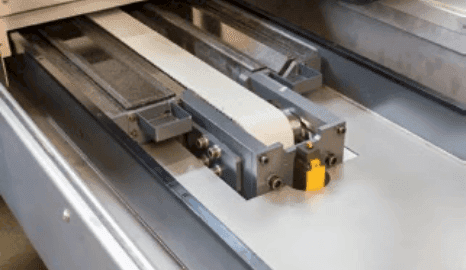 V-Flachführung in Kombination mit Zahnriemenantrieb für hohe Genauigkeit und geringe Temperatureinflüsse.